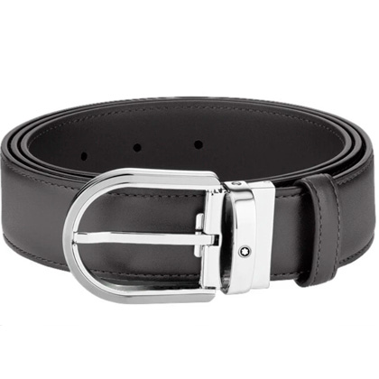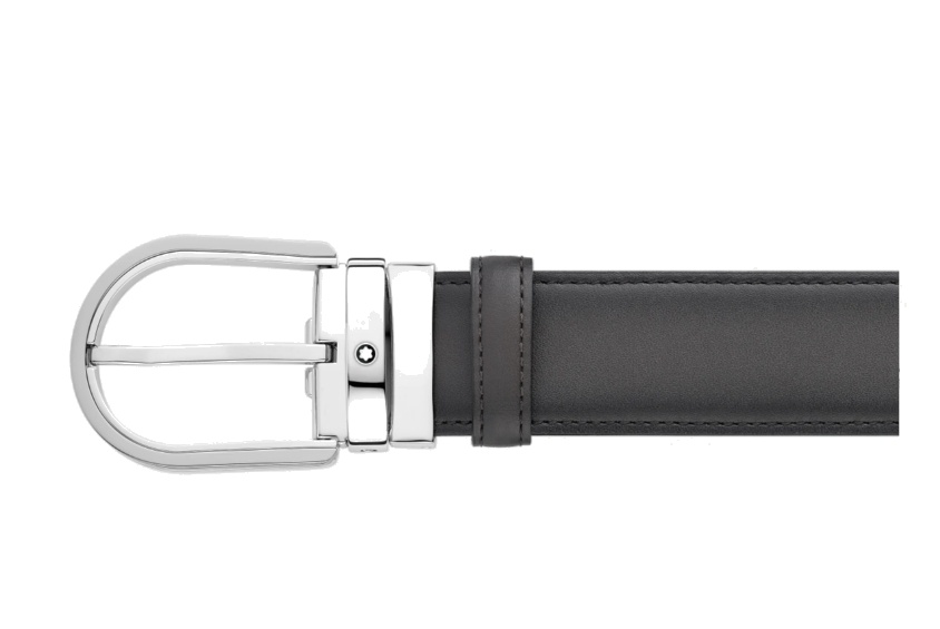 Кожаный ремень с пряжкой в форме подковы серого цвета 35 мм от магазина премиальных ручек Premium Pens в Нальчиках.